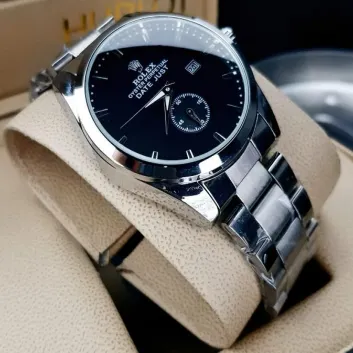 Rolex acero inoxidable, luz, alarma, cronómetro, horamilitar, fecha, vidrio mineral , broche de seguridad